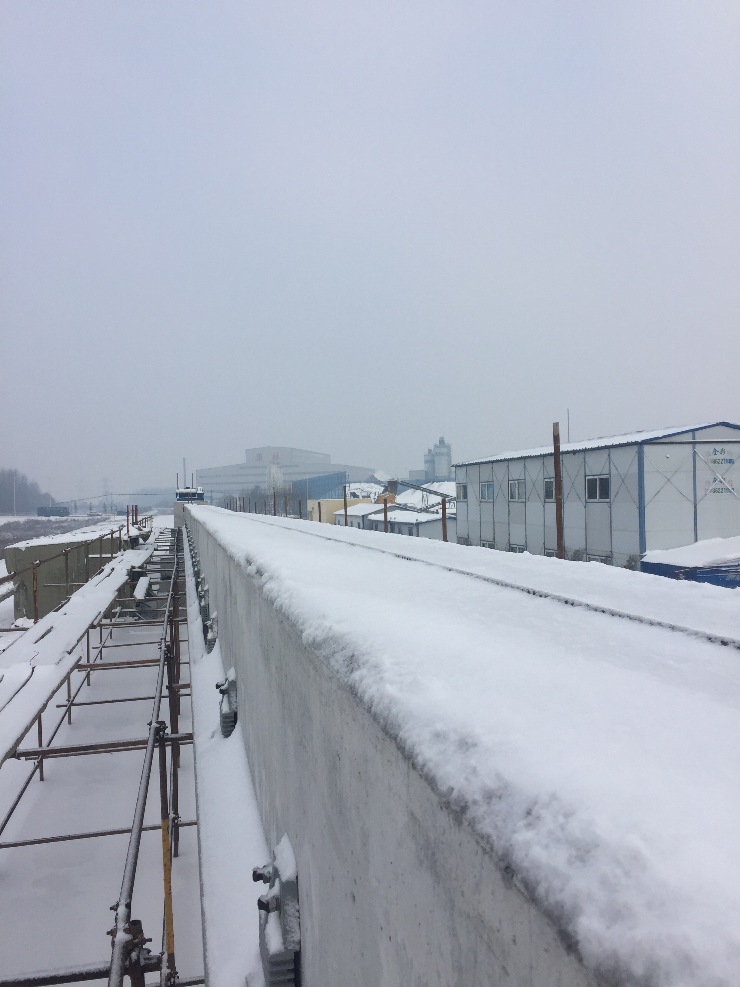 11月5日,吉林市迎來(lái)今冬的第一場(chǎng)中雪,試驗(yàn)梁面結(jié)冰嚴(yán)重,中鐵咨詢(xún)橋梁院?jiǎn)诬壢诒╉?xiàng)目組針對(duì)這一特殊工況成功地進(jìn)行了一次融冰雪試驗(yàn)。
