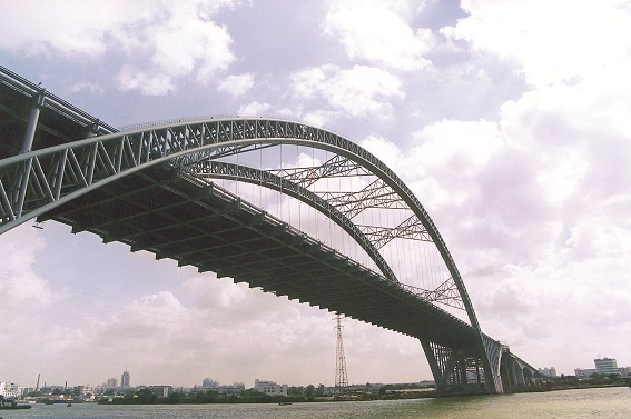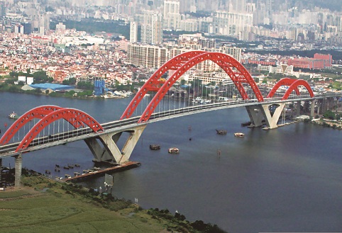 廣州市新光大橋——珠江景觀長(zhǎng)廊上的新地標(biāo),它恰似一只騰飛而起的大雁,又如一道彩虹飛架在珠江上。新光大橋全長(zhǎng)1083米,大橋跨越珠江主航道,主墩基礎(chǔ)位于水中,地質(zhì)條件復(fù)雜,水深受潮汐影響顯著。主橋采用177m+428m+177m三跨連續(xù)鋼桁拱與混凝土三角剛構(gòu)的新型組合結(jié)構(gòu),工程技術(shù)難度極大,施工風(fēng)險(xiǎn)極高。徐升橋帶領(lǐng)技術(shù)團(tuán)隊(duì)對(duì)此種新型橋梁結(jié)構(gòu)的受力原理、關(guān)鍵構(gòu)造以及施工新方法、新工藝等進(jìn)行了成套技術(shù)攻關(guān),經(jīng)過3年的研究和工程實(shí)踐,取得了諸多創(chuàng)新性成果:設(shè)計(jì)出世界上首座三跨連續(xù)鋼桁拱橋與混凝土三角剛構(gòu)的新型組合橋;提出了“原位臥拼+垂直提升”和“三大段浮運(yùn)提升”施工方案;找到了利用小型機(jī)具實(shí)現(xiàn)拱橋大節(jié)段安裝的新方法,并評(píng)為國(guó)家級(jí)工法(GJYJGF067-2008),大橋合龍時(shí),這座“巨無霸”的主拱軸線偏差僅為兩個(gè)毫米;提出了大型深水基礎(chǔ)不封底單層鋼板樁圍堰施工新工藝,獲得了國(guó)家發(fā)明專利;降低了施工成本,大橋的鋼結(jié)構(gòu)用量只有18t/m,大大低于同等跨度橋梁,節(jié)省鋼材3500噸,采用不封底鋼板樁圍堰技術(shù)節(jié)省了混凝土8000立方米,節(jié)省造價(jià)共4600萬元;在不完全斷航情況下僅2天時(shí)間便實(shí)現(xiàn)了主拱拱肋中段的安裝架設(shè)工作,并創(chuàng)造了剛構(gòu)拱組合跨度、拱肋滑移上船、提升以及拱肋曲梁合龍工藝等世界紀(jì)錄。相關(guān)發(fā)明專利在多座大橋建設(shè)中得到成功應(yīng)用,取得良好的社會(huì)效益和經(jīng)濟(jì)效益。新光大橋先后獲得2007年廣州市科學(xué)技術(shù)一等獎(jiǎng)、2007年中國(guó)鐵路工程總公司科學(xué)技術(shù)特等獎(jiǎng)以及2008年中國(guó)建設(shè)工程魯班獎(jiǎng)(國(guó)家優(yōu)質(zhì)工程獎(jiǎng))、第八屆中國(guó)土木工程詹天佑獎(jiǎng)等榮譽(yù)。