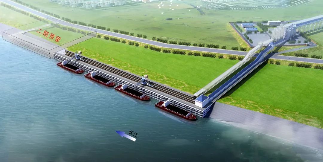 ▲華容煤炭鐵水聯(lián)運(yùn)儲(chǔ)配基地碼頭一期工程效果圖