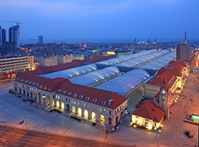 青島火車站地處山東半島,膠州灣畔,是膠濟鐵路的起點,設(shè)計最高聚集人數(shù)5000人,為大型旅客車站。站房地下二層,地上三層,建筑高度22.14m總建筑面積54277㎡;站場規(guī)模為10臺面10線,其無站臺柱風(fēng)雨棚覆蓋面積58300㎡,高架景觀連廊建筑面積2743㎡,地下通道建筑面積4820㎡。