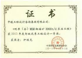 項(xiàng)目位于剛果民主共和國(guó)加丹加省克洛維茲市,設(shè)計(jì)采礦規(guī)模3000t/d,年產(chǎn)陰極銅25000t/a,包括采礦、浸出、萃取、電積等部分。中鐵咨詢冶金院主要負(fù)責(zé)萃取-電積生產(chǎn)線的施工圖設(shè)計(jì)任務(wù),設(shè)計(jì)采用了三萃一反萃取、不溶陽(yáng)極電解生產(chǎn)陰極銅的冶煉工藝。2010年完成初步設(shè)計(jì)工作,2011年完成施工圖設(shè)計(jì)工作, 2012安排專業(yè)技術(shù)人員進(jìn)行該項(xiàng)目的現(xiàn)場(chǎng)技術(shù)服務(wù)工作。2012年10月項(xiàng)目提前半年實(shí)現(xiàn)一次試生產(chǎn)成功,產(chǎn)出第一批高純陰極銅,并順利達(dá)到了設(shè)計(jì)產(chǎn)能。該項(xiàng)目榮獲2013年度全國(guó)有色金屬行業(yè)部級(jí)優(yōu)秀工程設(shè)計(jì)一等獎(jiǎng)。